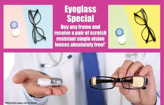 Don't forget about our eyeglass specials starting at $79 for a complete pair!! We offer Buy One Get One Free on ALL of our frames and lenses! (Excluding sports eyewear and insurance supplied eyeglasses!)